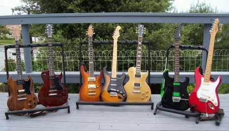 Many of these guitars are hung on the studio walls or on stands within easy reach. They are set-up, intonated, ready to play.